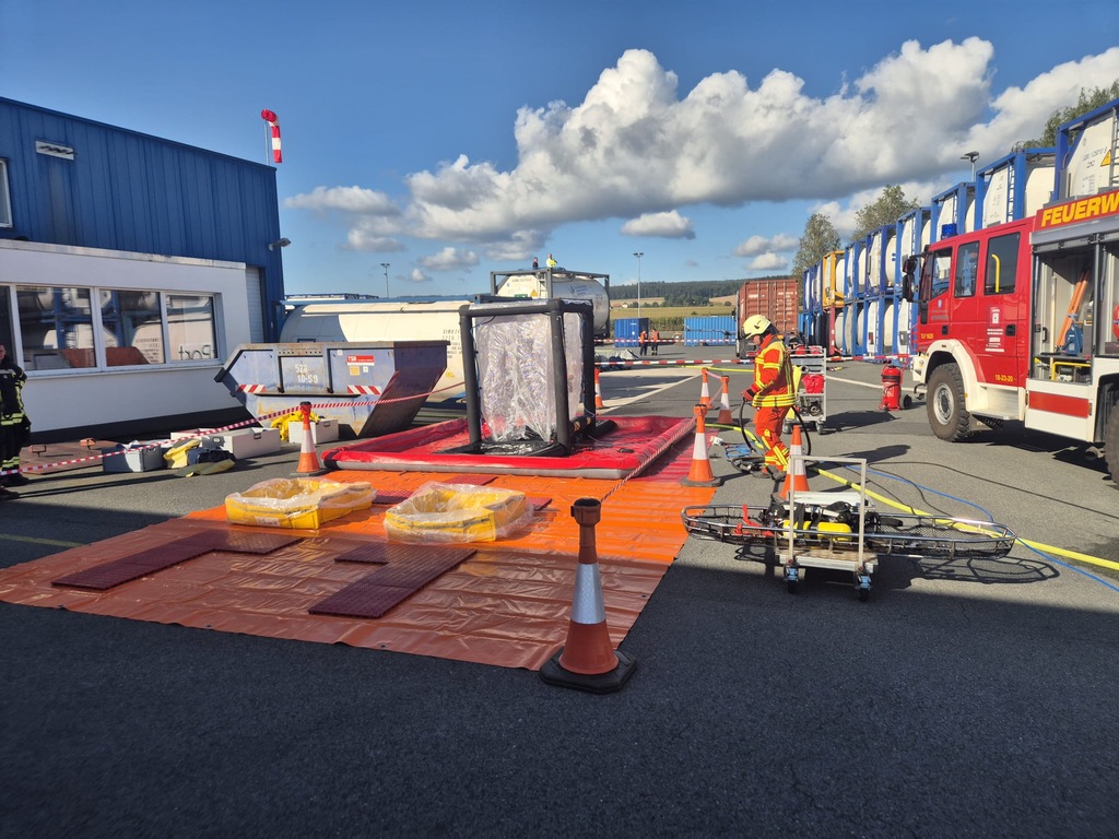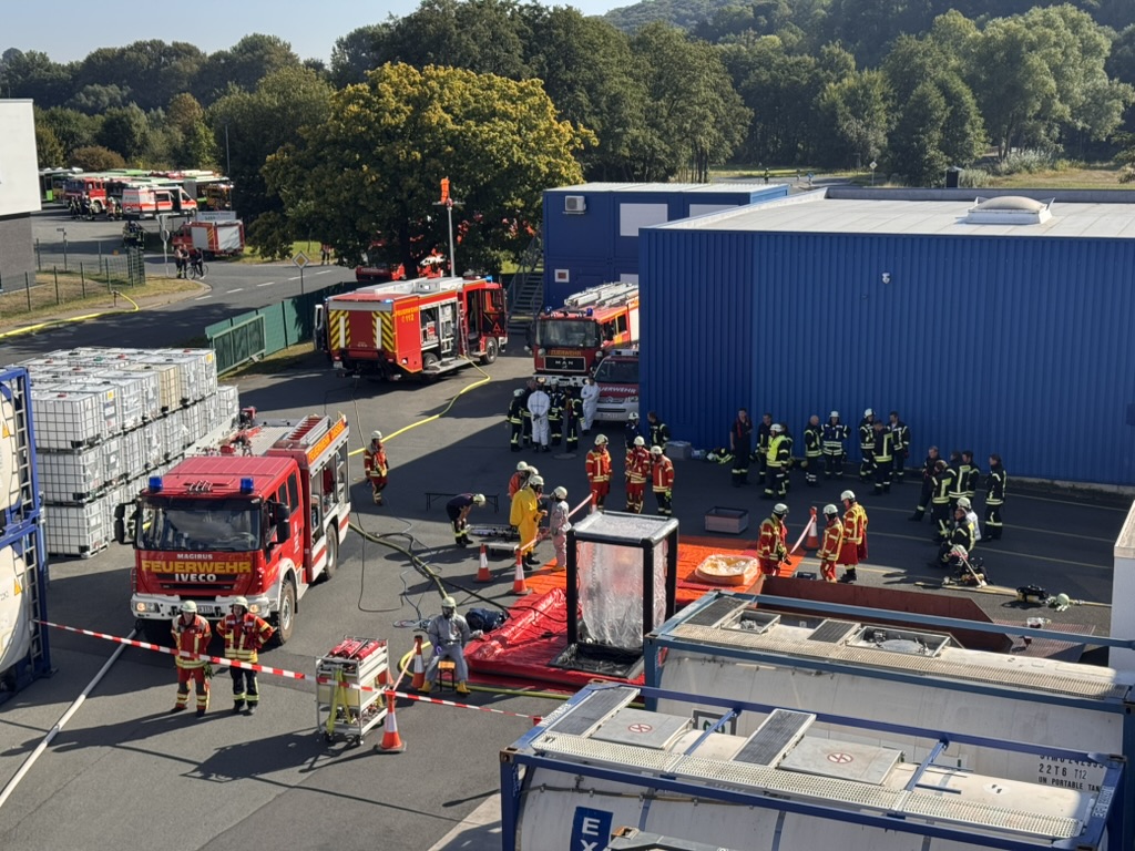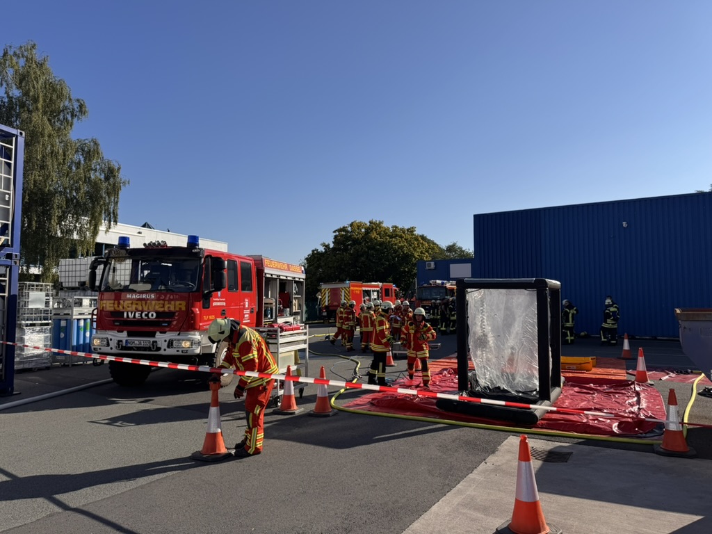 This past weekend, a large-scale hazardous materials drill took place on our company premises in Dassel. Around 100 emergency responders from various organizations trained together to be fully prepared in case of a real emergency.